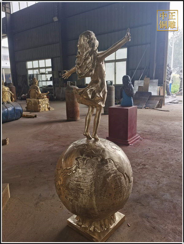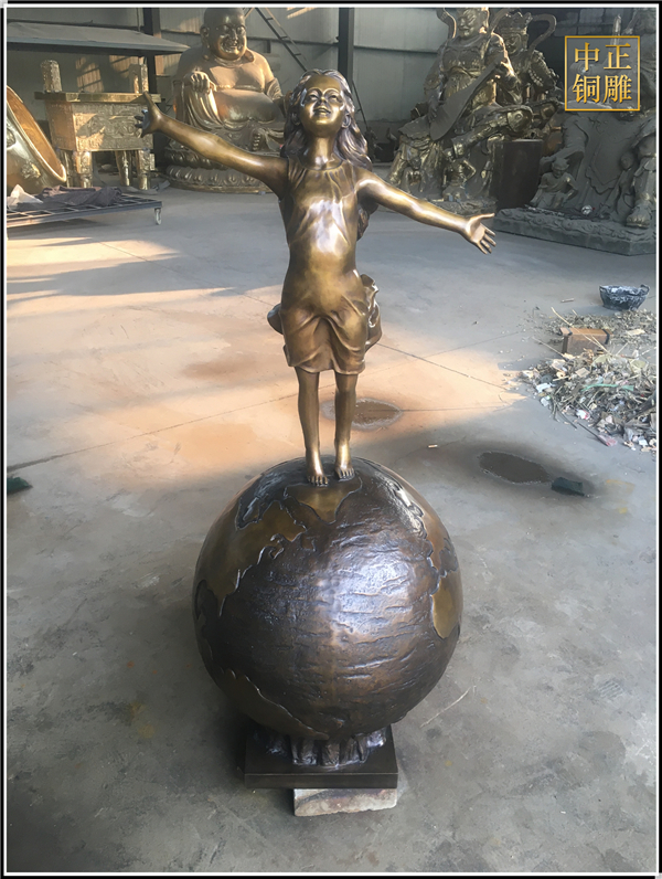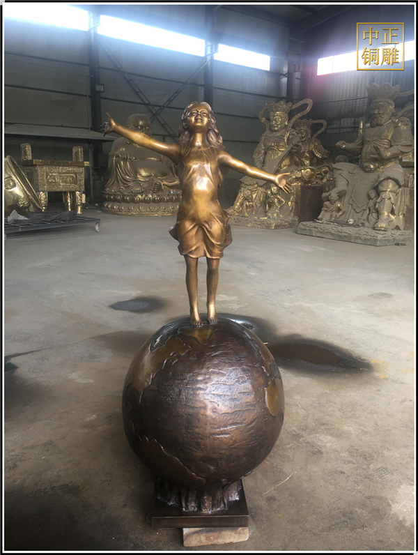 我公司生產(chǎn)的這件高1.5米的站在地球上的小女孩人物雕塑已發(fā)往江蘇省鹽城市,這件站在地球上的小女孩人物銅雕塑是以保護地球環(huán)境為主題設(shè)計制作的。