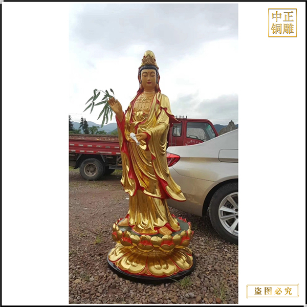 除此之外,觀音菩薩銅雕手持的柳枝還有更深的含義。柳樹(shù)在春天發(fā)芽,代表菩薩的心像春天一樣長(zhǎng)。這也意味著佛教可以像萬(wàn)物一樣蓬勃發(fā)展。一陣和煦的微風(fēng)吹來(lái),楊柳在風(fēng)中搖曳,也代表著佛祖心中柔軟的悅意。
